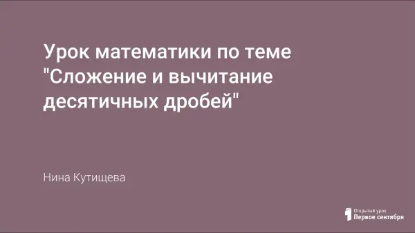 В статье представлен план-конспект урока математики в 6-м классе (учебник «Арифметика 6» под редакцией С.М. Никольского), а также презентация урока, выполненная в программе PowerPoint. Цели урока: обобщить и систематизировать знания и умения по сложению и вычитанию десятичных дробей; отработать навыки выполнения электронного тестирования.