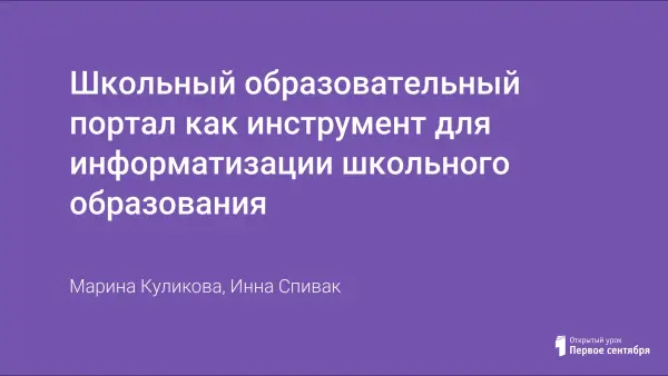 Школьный образовательный портал как инструмент для информатизации школьного образования