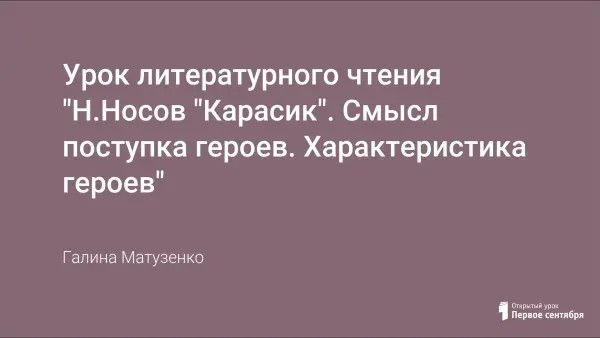 Урок литературного чтения знакомит учащихся с творчеством Н.Носова, историей его героев, учит анализировать текст, способствует развитию связанной речи, учит навыкам беглого чтения. Цель урока: воспитание культуры отношений между сверстниками; развитие способности восприятия детской литературы.