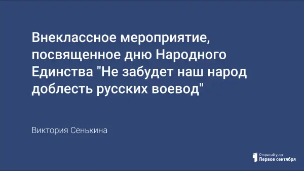 Основная идея урока сформировать у учащихся представление о новом государственном празднике; показать, основываясь на фактах, значение действий народного Ополчения под руководством К.Минина и Д.Пожарского в деле освобождения Родины от польских интервентов; развивать у ребят чувство патриотизма к своей Родине, уважения своих предков, исходя из событий далекого прошлого.