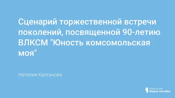 В 2008 году отмечалось 90-летие ВЛКСМ. Сценарий торжественного мероприятия, посвященного юбилею комсомола. Встреча с ветеранами комсомола разных лет.