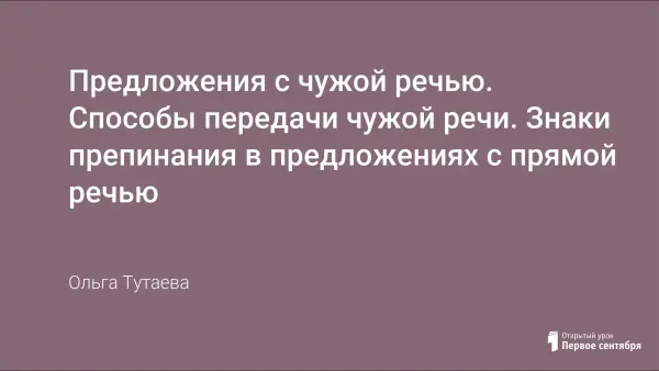 На данном уроке ставится цель – расширить представления учащихся о способах передачи чужой речи; повторить пунктуацию при ПР, стоящей до и после слов автора, а также дать представление о предложениях с ПР, разорванной словами автора.