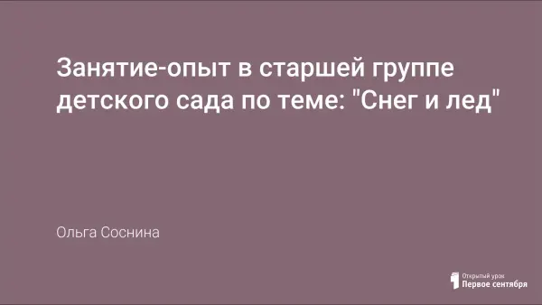 Данная форма занятия используется как способ решения познавательной задачи по изучению свойств снега и льда, в результате которой дети приходят к самостоятельно формулируемому выводу на основе полученных результатов.