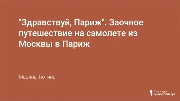 Приведен сценарий заочного путешествия на самолете из Москвы в Париж. Мероприятие для учащихся 5-х и 9-х классов проводится на французском языке, призвано совершенствовать владение навыком разговорного языка и знакомить с достопримечательностями Москвы и Парижа. Учащиеся расширяют лексический словарь по теме, развивают память и творческую фантазию.
