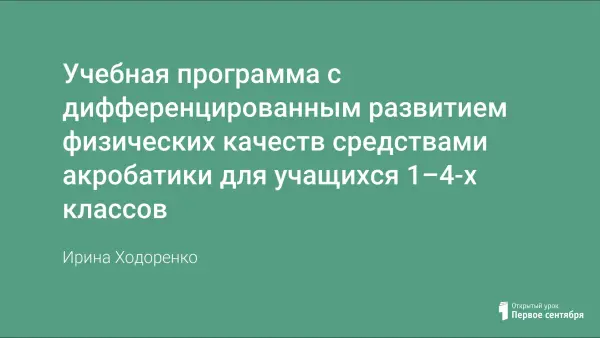 Разработанная программа включает в себя учебный материал, содержащий общегосударственный стандарт по физической культуре, предусматривающий освоение школьниками двигательных умений и навыков из различных видов спорта, а также развитие основных физических качеств. Существенным дополнением к общегосударственному стандарту является углубленное изучение элементов акробатики. Используются упражнения из парно-групповой акробатики: хваты, поддержки, полуколонны, пирамиды и другие. Данные упражнения способствуют реализации общих задач, обеспечивают выполнение стандартных норм и требований по физической подготовке, они не искажают сущность уроков, а как бы дополняют арсенал используемых средств.
