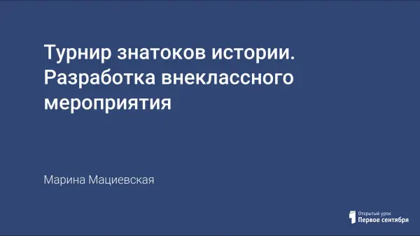 Турнир знатоков истории может быть проведен как заключительное мероприятие в рамках предметной недели. Для проведения турнира формируется две команды по 8 человек. Каждая команда придумывает себе название, эмблему и девиз, выбирает капитана команды. В игре участвуют команды в составе родителей, детей и учеников школы старших классов. Ведущему – учителю — помогает ученик (по желанию).