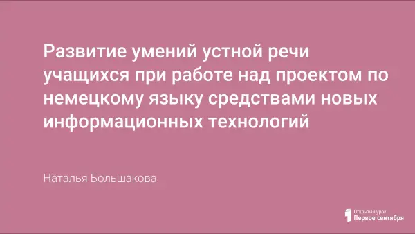 В процессе работы над проектом по определённой теме учебника учащимся предлагается создать собственные презентации на немецком языке средствами компьютерных технологий, что позволяет в дальнейшем проводить медиауроки с их использованием. Такая работа способствует повышению мотивации учащихся к учению, развитию самостоятельной творческой деятельности, что позволяет говорить о деятельностном подходе в обучении и ведёт к повышению эффективности процесса обучения иностранному языку.