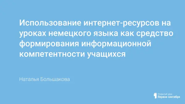 Использование интернет-ресурсов на уроках немецкого языка позволяет учащимся получить представление о культуре народов стран изучаемого языка, легко ориентироваться во "всемирной паутине", а значит, способствует формированию информационной компетентности школьника и его успешной социальной адаптации.