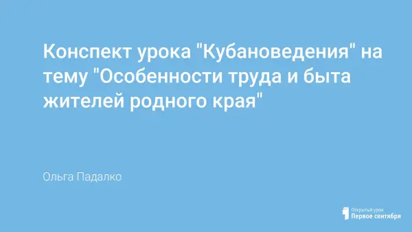Урок, на котором дети знакомятся с промыслами и ремёслами Кубани, рассчитан на детей, обучающихся в 3–4-х классах начальной школы, а также на всех, кому интересна история нашей страны.