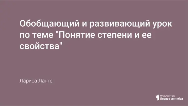 Данный урок является обобщающим и развивающим. Позволяет повторить наиболее важные моменты изученной темы, а также идет работа над развитием мыслительных процессов школьника. Повторение свойств степени в данном уроке является лишь материалом для реализации развивающей цели.