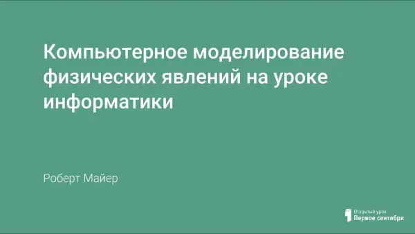 Вниманию учителей информатики предлагается электронный вариант книги "Компьютерное моделирование физических явлений", который может быть бесплатно скачан с сайта http://maier-rv.glazov.net или http://komp-model.narod.ru/. В ней рассмотрены методы моделирования одномерного и двумерного движения точки, распространения волн в упругой среде, теплопроводности, течения жидкости, автоволновых процессов и других явлений.