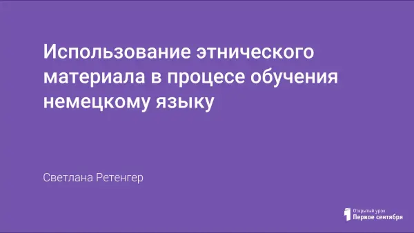 Этнический материал мотивирует учащихся к изучению языка, развивает речевые умения, расширяет словарный запас, употребляется для формирования правильного произношения, прочного закрепления лексического и грамматического материала. Материал по истории российских немцев используется для знакомства учащихся с историей, традициями немецкого народа. С помощью этнического материала поддерживается интерес к изучению языка.