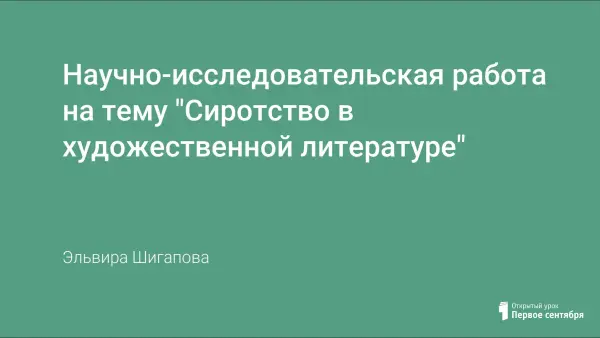 Научно-исследовательская работа, посвященная проблемам сиротства в литературе и жизни.