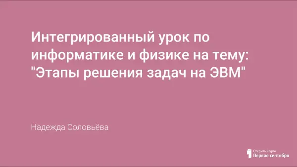 Урок проводится после знакомства с этапами решения задач на ЭВМ. Задача из раздела механики физики позволит наглядно пронаблюдать движение по параболе, закрепить навыки работы на ЭВМ, может быть примером при изучении подпрограммы в программировании.
