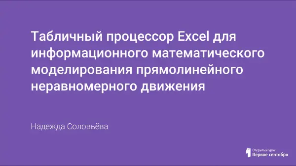 Урок развивает навыки моделирования, совершенствует навыки работы в электронных таблицах – построение диаграммы движения по таблице.