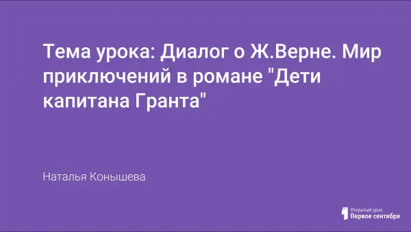 Данный урок позволяет рассмотреть биографию писателя, показать своеобразие его личности и дать жанровое определение произведениям Ж. Верна. Занимательно и интересно эти цели позволяет решить та форма урока, которая соединяет в себе различные современные технологии преподавания литературы в школе: проблемного обучения, диалогового общения, чтения и письма для развития критического мышления.
