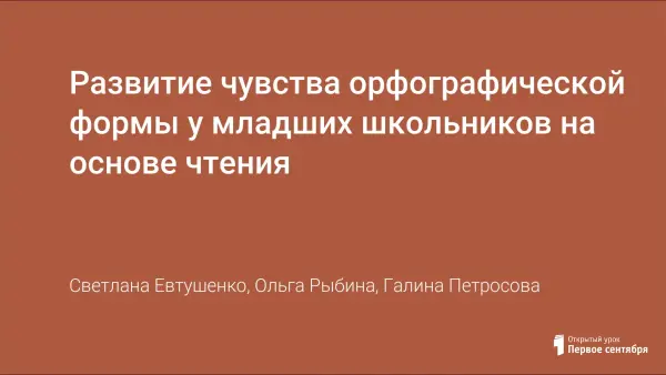 Развитие чувства орфографической формы у младших школьников на основе чтения