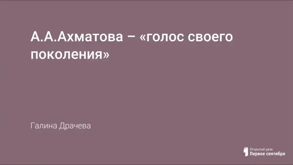 Цели урока: понимание связи произведений Анны Ахматовой с эпохой их написания; умение анализировать литературное произведение: определять его принадлежность к одному из литературных родов и жанров; понимать и формулировать тему, идею, особенности поэтического течения акмеизм; умение определять в произведении изобразительно-выразительные средства языка, понимать их роль в раскрытии идейно-художественного содержания произведения.