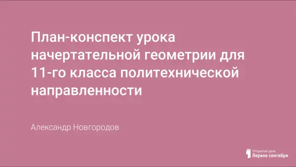 В статье дана авторская разработка урока начертательной геометрии для учащихся 11-го класса политехнической направленности