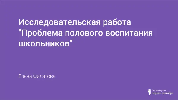 Данная работа посвящена изучению проблемы полового воспитания несовершеннолетних. Долгие годы это была запретная тема. В настоящее время подростки очень рано начинают вступать в половую жизнь. Движимые чаще всего любопытством, они зачастую не осознают всех последствий. Поэтому данная проблема волнует родителей, педагогов, медицину.