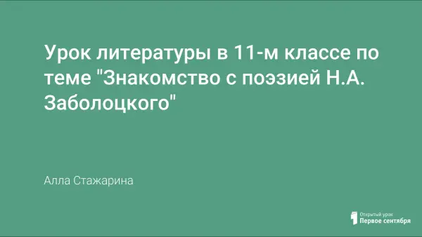 В материале дан конспект урока литературы в 11-м классе по творчеству поэта Николая Заболоцкого. Желательно, чтобы урок был спаренный (2 часа). Предусмотрена предварительная подготовка учащихся: поиск материала о поэте, заучивание наизусть нескольких стихотворений отдельными учащимися.