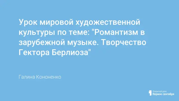 Урок посвящен знакомству учащихся с музыкой Гектора Берлиоза – яркого представителя Французского романтизма. Проводится в 10-м классе, в рамках темы «Идеи романтизма в зарубежном искусстве». В уроке используются групповая форма работы и такая форма, как музыкально-литературная композиция. В конце урока можно дать домашнее задание – написать эссе на любую тему, которая покажется учителю необходимой. Эссе может служить рефлексией на материал урока.