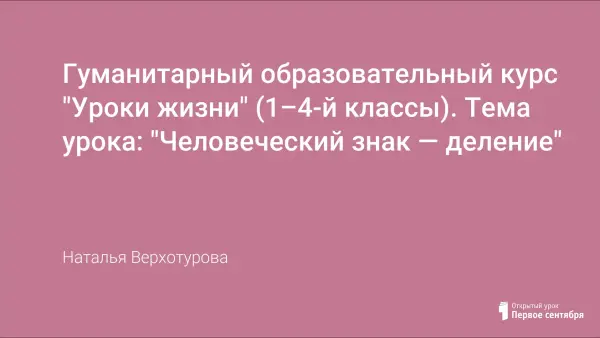Вашему вниманию предлагается статья, в которой представлен гуманитарный образовательный курс "Уроки жизни" для 1–4-х классов. Тема "Деление".
