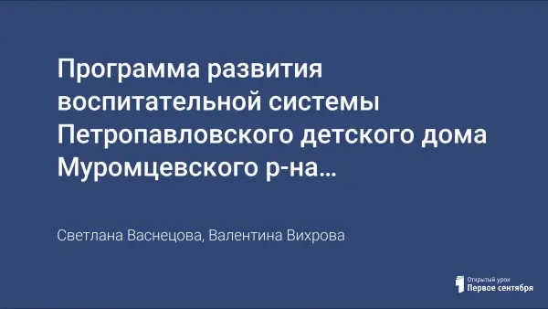 Программа развития воспитательной системы Петропавловского детского дома Муромцевского р-на "Социальная адаптация воспитанников Петропавловского детского дома на 2003–2008 учебный год"