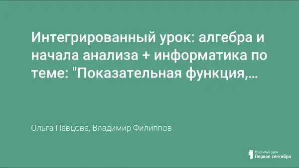 Интегрированный урок алгебры и начал анализа и информатики по предложенной теме позволяет учащимся полнее раскрыть содержание учебных дисциплин и применить на практике ранее полученные теоретические знания. В ходе урока учащиеся создают в среде программирования Visual Basic математические модели графиков показательных функций и исследуют их свойства. Разработка может быть адаптирована к любой из изучаемых тем курса алгебры и начал анализа.