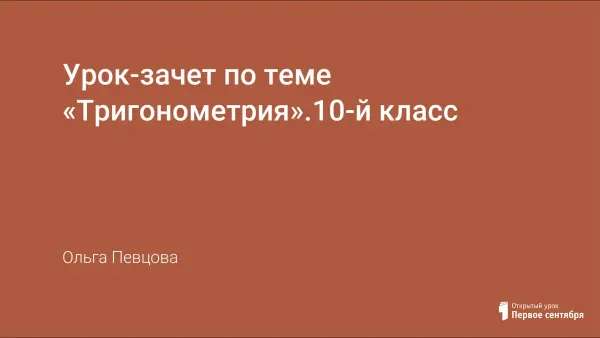 Методическая разработка урока-зачета в 10-м классе по тригонометрии. Хорошие знания и прочные навыки по тригонометрии являются свидетельством достаточного уровня математической культуры, непременным условием успешного изучения в вузе математики, физики, ряда технических дисциплин.