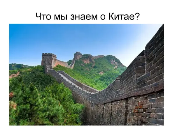 Занятие по теме «Что мы знаем о Китае?» знакомит младших школьников с крупнейшим государством в Центральной и Восточной Азии – Китаем, особенностями этой страны, достижениями китайского народа.