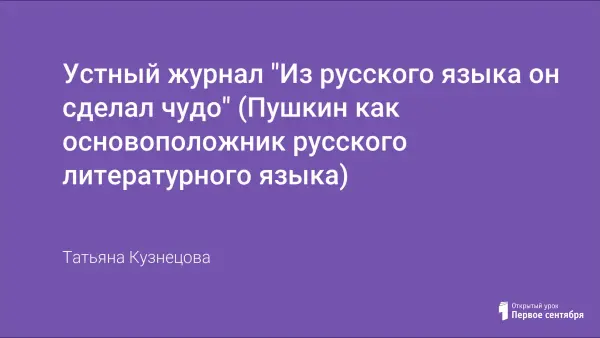 Устный журнал "Из русского языка он сделал чудо..." расширяет представление о Пушкине как "великом реформаторе российской словесности".