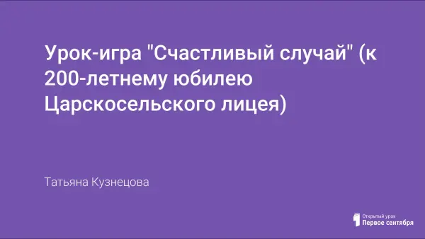В ходе проведения урока детям представляется возможность открыть для себя мир пушкинского лицейского братства и познакомиться с особенностями обучения и преподавания в Лицее. Урок успешно апробирован на практике и рассчитан на детей 12‒15 лет..