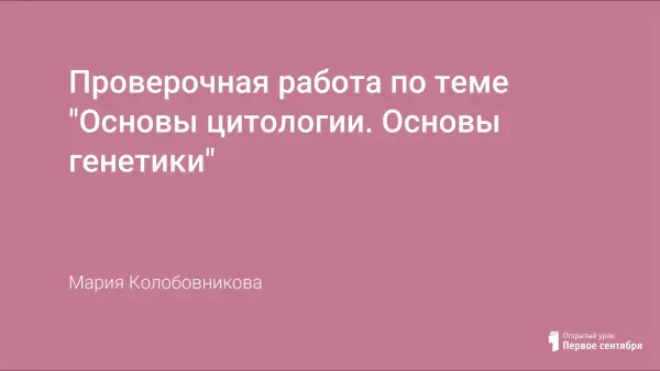 Тест может быть использован для закрепления знаний по теме, для проверки знаний по теме, для самостоятельной работы обучающихся. Ключевые слова: клеточная теория, строение клетки, процессы жизнедеятельности клетки, биосинтез белка, химический состав клетки, макро- и микроэлементы, неорганические, органические вещества (белки, нуклеиновые кислоты, углеводы, липиды, АТФ), энергетический обмен, бесполое размножение, жизненный цикл клетки, митоз, мейоз, соматические и половые клетки, индивидуальное развитие (онтогенез), закономерности наследственности, закономерности изменчивости, ненаследственная (модификационная) изменчивость, норма реакции, наследственная изменчивость: мутационная, комбинативная, прокариоты и эукариоты, генетика человека.