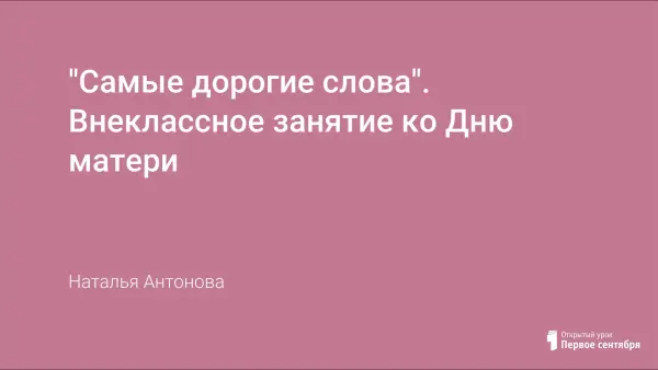 Внеклассное занятие, посвященное Дню матери, доставит радость и удовольствие как взрослым, так и детям, оживит интерес к владению бесценным даром слова, обогатит словарный запас обучаюшихся. Развивает умение работать в группе и согласовывать свои действия с партнером. Воспитывает любовь и внимание к матери, чувство коллективизма и товарищества.