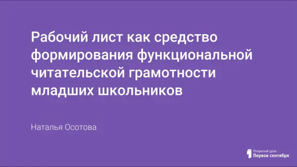 Автор статьи в своей работе акцентировал внимание на важнейшей образовательной задаче, формирование функциональной читательской грамотности у младших школьников. У многих школьников сегодня наблюдается спад интереса к чтению. Проявляется равнодушие, а порой отрицательное отношение к урокам литературного чтения. Поэтому современный урок должен стать привлекательным и содержательным. В работе рассматривается использование на уроках литературного чтения рабочих листов, как продуктивного средства по формированию функциональной читательской грамотности.