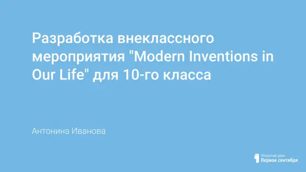 Представленная разработка внеклассного мероприятия «Modern Inventions in Оur Life» для 10-го класса позволяет расширить знания учащихся в области развития науки и техники средствами английского языка.