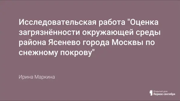 Цель работы: оценить загрязнённость окружающей среды района Ясенево города Москва по снежному покрову.