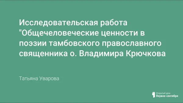 Подростку сложно самому определиться в современном многополярном мире, и обращение к опыту взрослых людей, придерживающихся национальных духовно-нравственных представлений, помогает открыть для себя важные смыслы, основанные на многовековом опыте русского народа и опыте более чем двух тысячелетий Православия. В век Интернета, культа денег, пиара, имиджа и технологий и человеческой гордости человек не должен забывать о таких общечеловеческих ценностях как Любовь, Доброта, Терпение, Смирение перед величием Творца, бережное отношение к окружающей природе и безусловная ценность человеческой жизни. Поэзия Владимира Крючкова помогает духовно-нравственному воспитанию через общение с духовным Словом, которое обращает читателей к Православию.