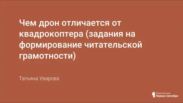 Даны задания на формирование читательской грамотности для учащихся 6–7-х классов по текст Андрея Шелкового "Чем отличается дрон от квадрокоптера".