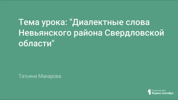Диалектные слова — слова, исторически сложившиеся на Среднем Урале и территориально ограниченные на уровне фонетики, морфологии, синтаксиса — бытуют и сегодня в нашей местности. Материалами для урока послужили сказы П.П. Бажова, а также архивный материал школьного этнографического музея, собранного в краеведческих экспедициях.