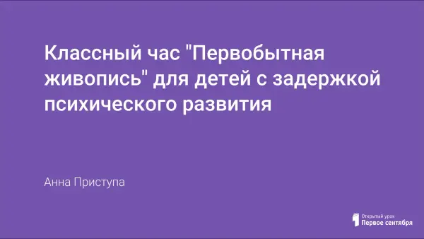 Данная разработка представляет собой классный час эстетического цикла "Первобытная живопись", предназначенный для классов КРО VII вида. Его характерные черты: учет психологических особенностей детей с задержкой психического развития, стремление совместить теоретический компонент с практикой, применение игровых элементов, опора на знания по истории. Актуальность данной разработки заключается в необходимости усиленного эстетического развития детей с ЗПР. Урок апробирован в 5-м классе VII вида.