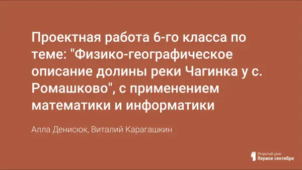 Проектная работа 6-го класса по теме: "Физико-географическое описание долины реки Чагинка у с. Ромашково", с применением математики и информатики