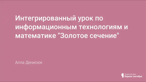 Понятие пропорции - одна из важнейших тем курса математики. А научить применять пропорцию в различных сферах деятельности человека - это одна из задач учителя математики. Урок "Золотое сечение" как нельзя более подходит для этой цели. В данном уроке проведена интеграция математики с информатикой, искусством, биологией. Урок проходит в виде деловой игры с созданием проекта по теме урока.