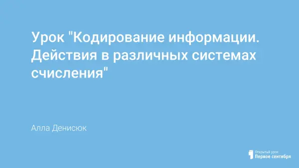 В статье рассматривается урок информатики по теме «Кодирование информации и действия в двоичной, восьмиричной, шестнадцатеричной системах счисления». Во время урока проводится демонстрация презентации.