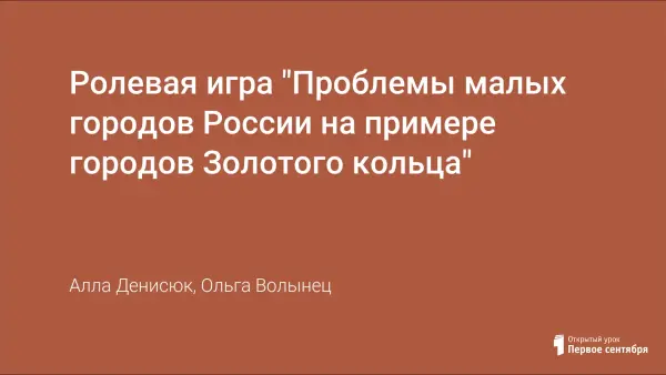 Ролевая игра "Проблемы малых городов России на примере городов Золотого кольца"
