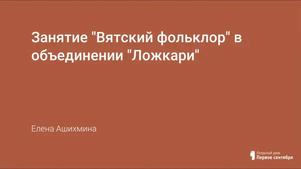 Занятие сегодня посвящено Вятскому фольклору.