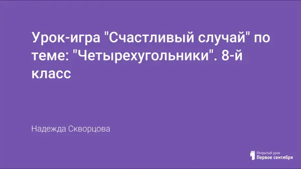 Урок в форме игры «Счастливый случай» – один из видов нетрадиционной формы проведения уроков математики. Он требует большой подготовки и со стороны учителя, и со стороны учащихся. Учащиеся, которые принимали активное участие при подготовке, входят в состав «жюри». Игра проводится в 4 гейма. В перерывах между геймами слушаются сообщения. Весь материал оформлен на плакатах.
