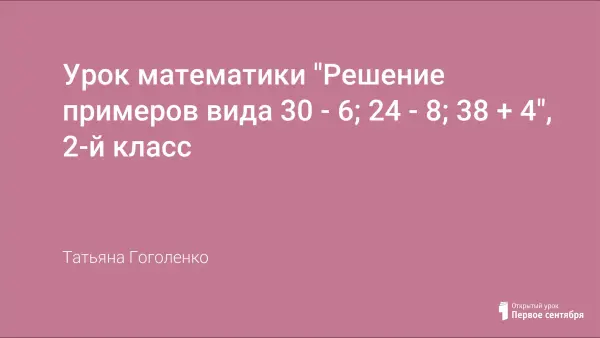 Разработка урока по закреплению пройденного материала по теме: "Решение примеров вида - 30-6; 24-8; 38+4". Развивает и расширяет кругозор учащихся.