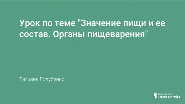 В ходе урока учащиеся знакомятся со значением пищеварения, особенностью важнейших пищевых продуктов и питательных веществ, строением пищеварительной системы. На уроке используются элементы проблемного метода обучения, групповая и индивидуальная работа.